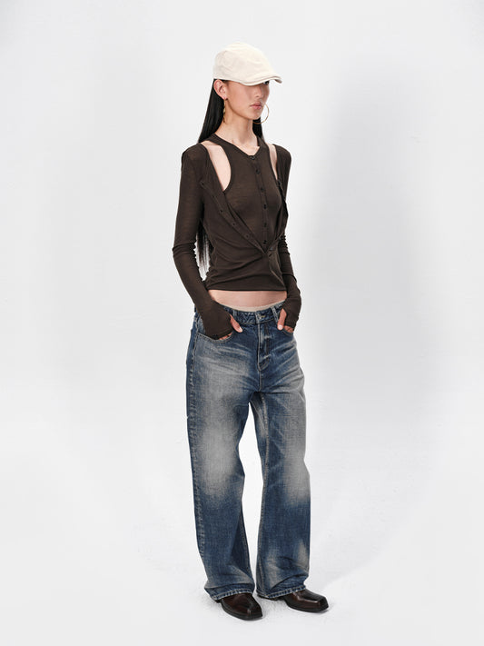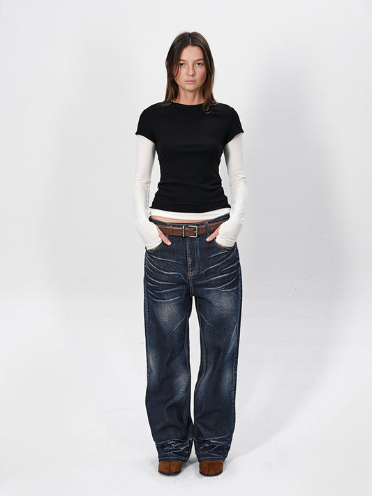 "Take A Walk" Double-waist Low Crotch Sweatpants