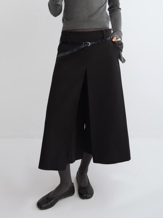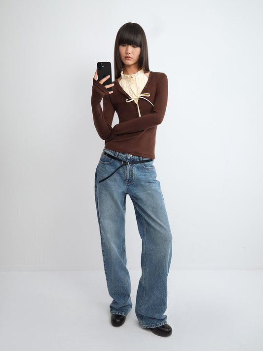 Gemini Layered Waistband Wide-Leg Denim Pants