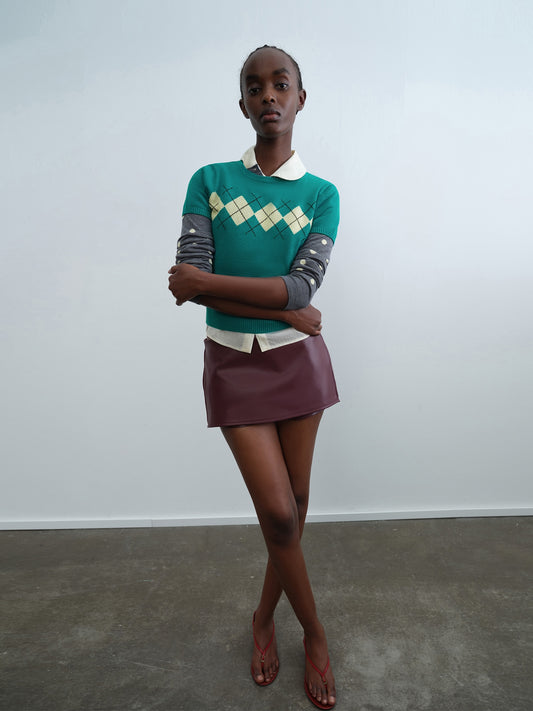Diamond-Knit Cropped Cardigan/Buttons Knit Tank