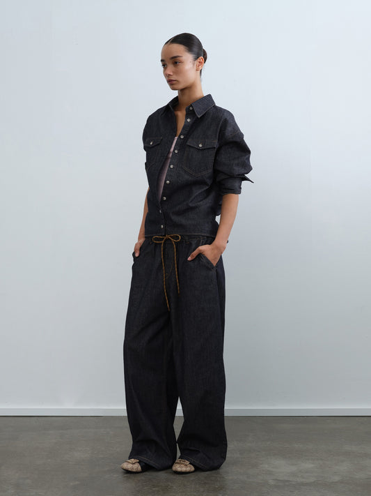 Raw Denim Adjustable-Waist Drop Shoulder Shirt