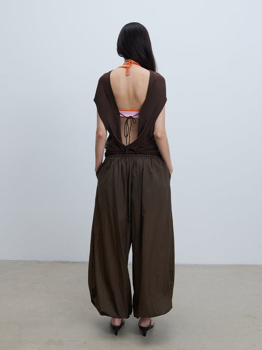 “Cloud” Lightweight Pleated Wide-Leg Pants