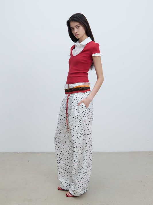 Relaxed Colorblock Waistband Drawstring Printed Pants