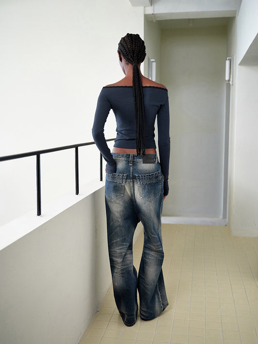 TREE05 Halo Blue Low-Waist Straight-Leg Jeans