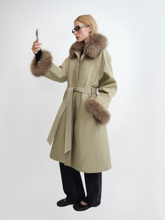 Detachable Fur Hood Belted Parka