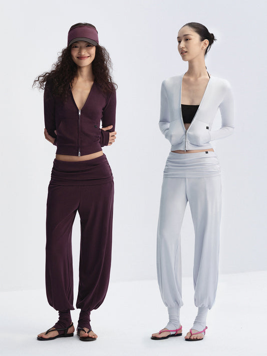 Sold outV-Neck Zip-Up Long Sleeve Top