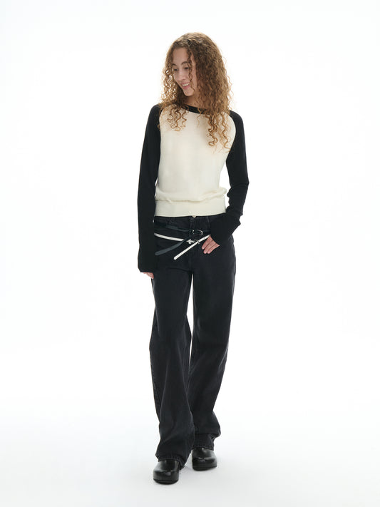 Relaxed Colorblock Raglan Wool Knit Top