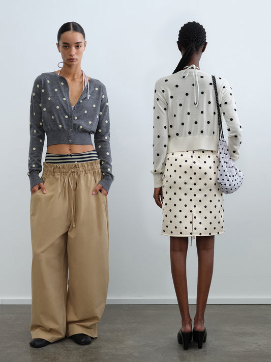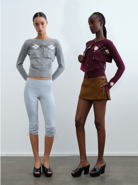 Diamond-Knit Cropped Cardigan/Buttons Knit Tank