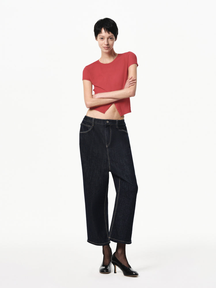 Half-Placket Silk Wool Knit Top